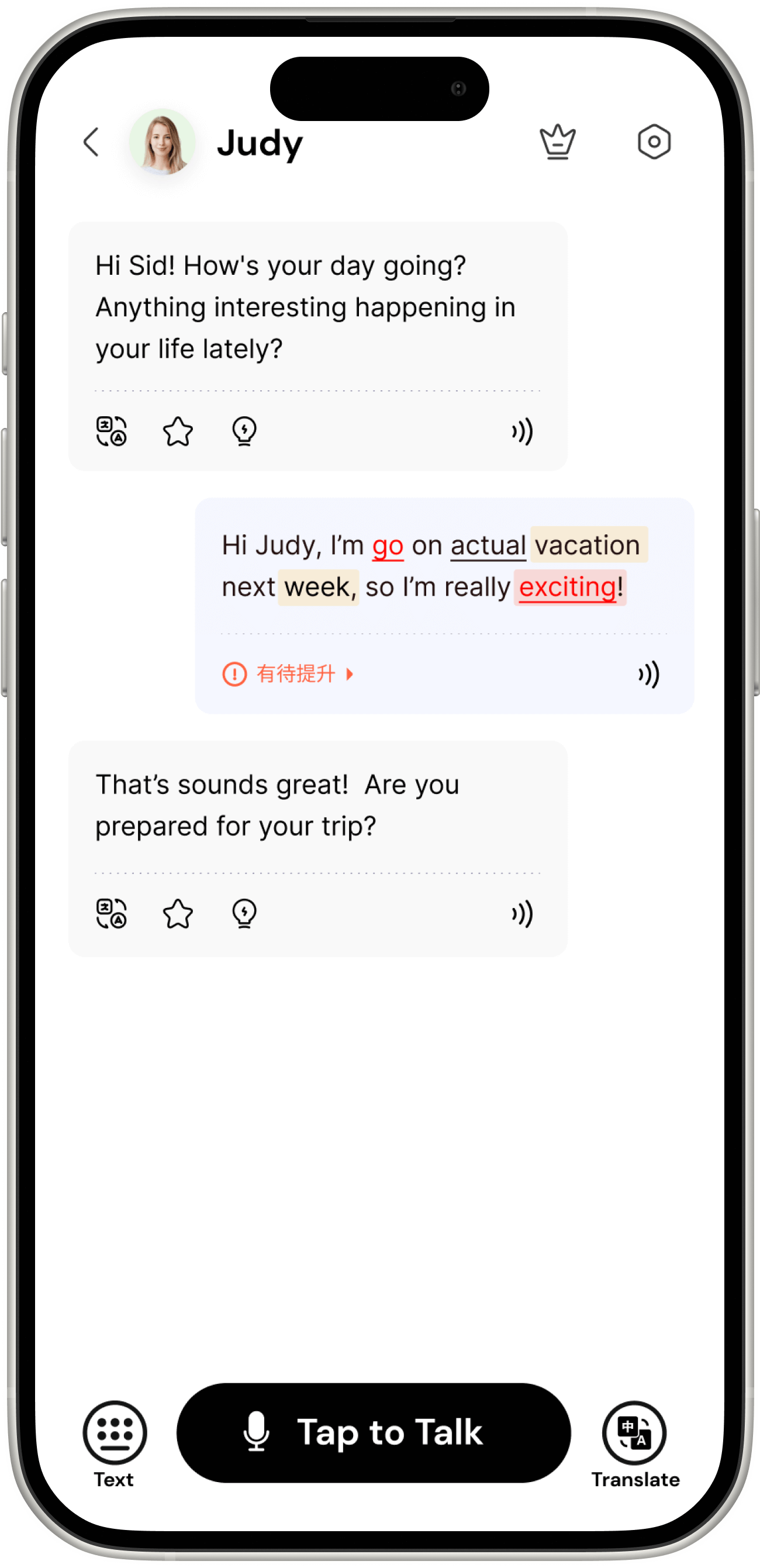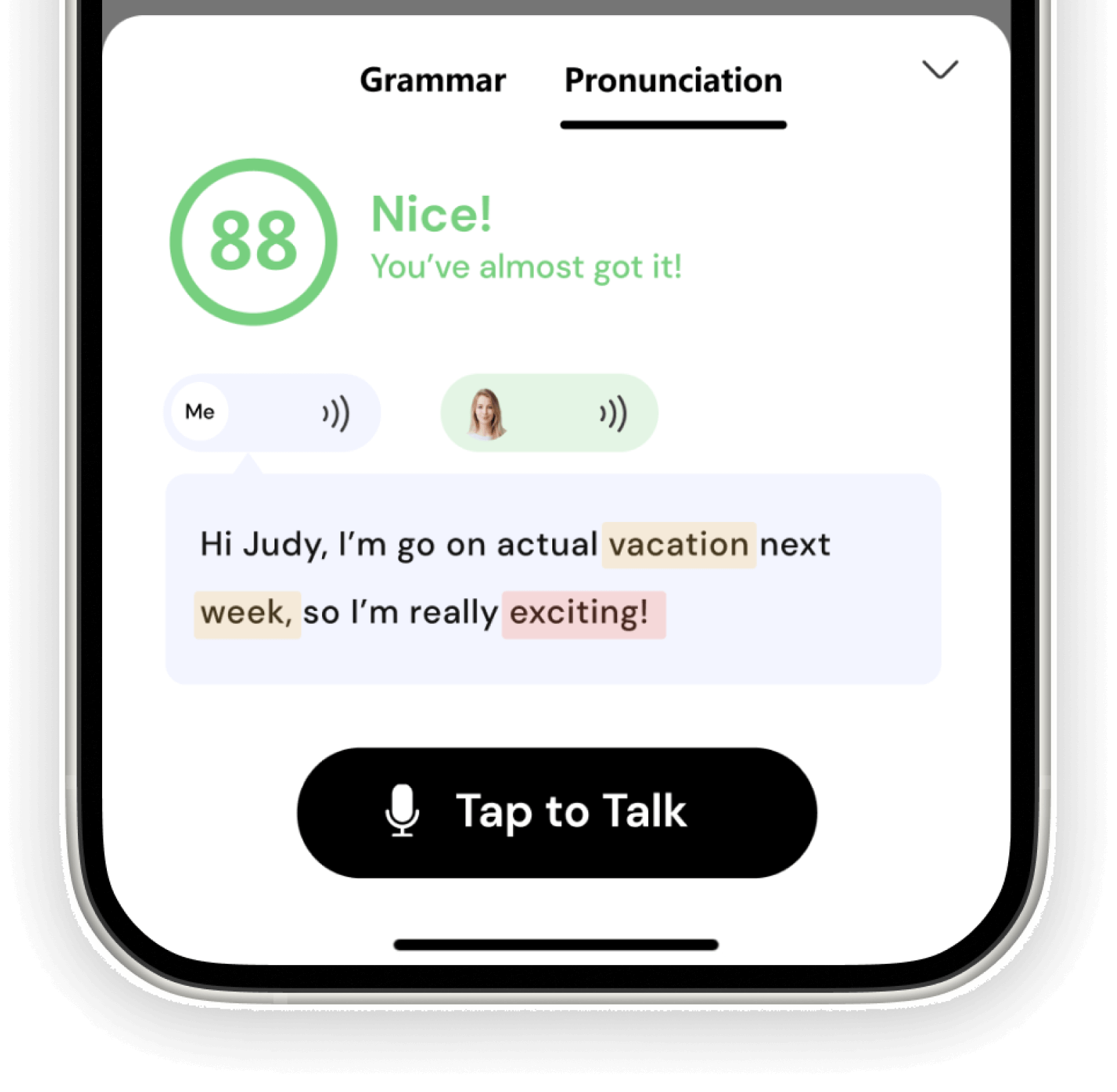 Polish your pronunciation, correct your grammar, and refine your phrasing